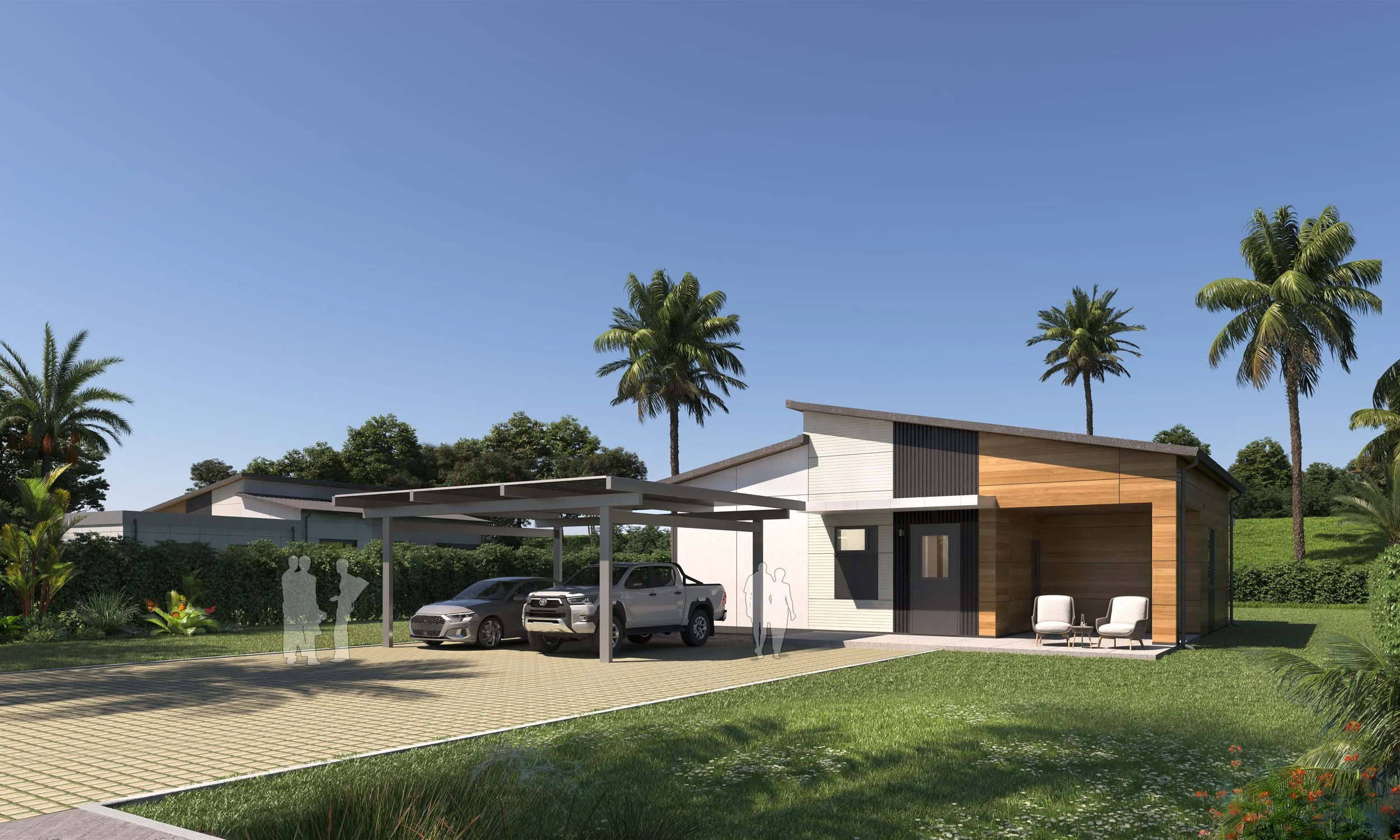 What makes the Kīhāpai unique is what is already built into the slab and foundation — space for a future third bedroom. When your ʻohana is ready, that room can be added at your own cost and on your own timeline. You are not locked in. You are starting with a foundation that grows with you.